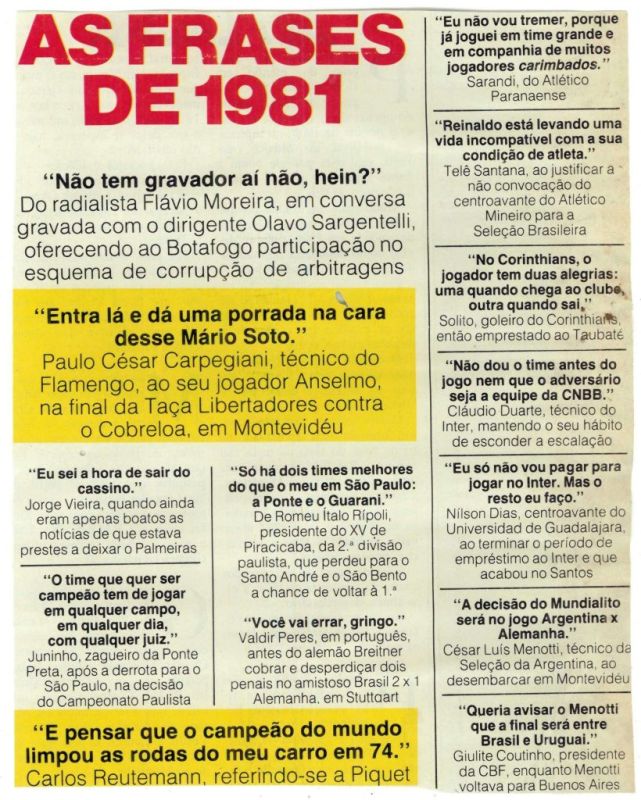 As frases de 81 Autor do post:ukbsistemas Post publicado:21 de fevereiro de 2021 Categoria do post:Curiosidades do Esporte Comentários do post:0 comentário Você também pode gostar Times Nacionais de Futebol 13 de dezembro de 2020 2013: Disputa de bola cria sombra em forma de cachorro no Paulista sub-20 11 de junho de 2015 O rico e ingênuo futebol do Kuwait 7 de abril de 2021 Deixe um comentárioComentárioDigite seu nome ou nome de usuário para comentar Digite seu endereço de e-mail para comentar Digite o URL do seu site (opcional) Δ