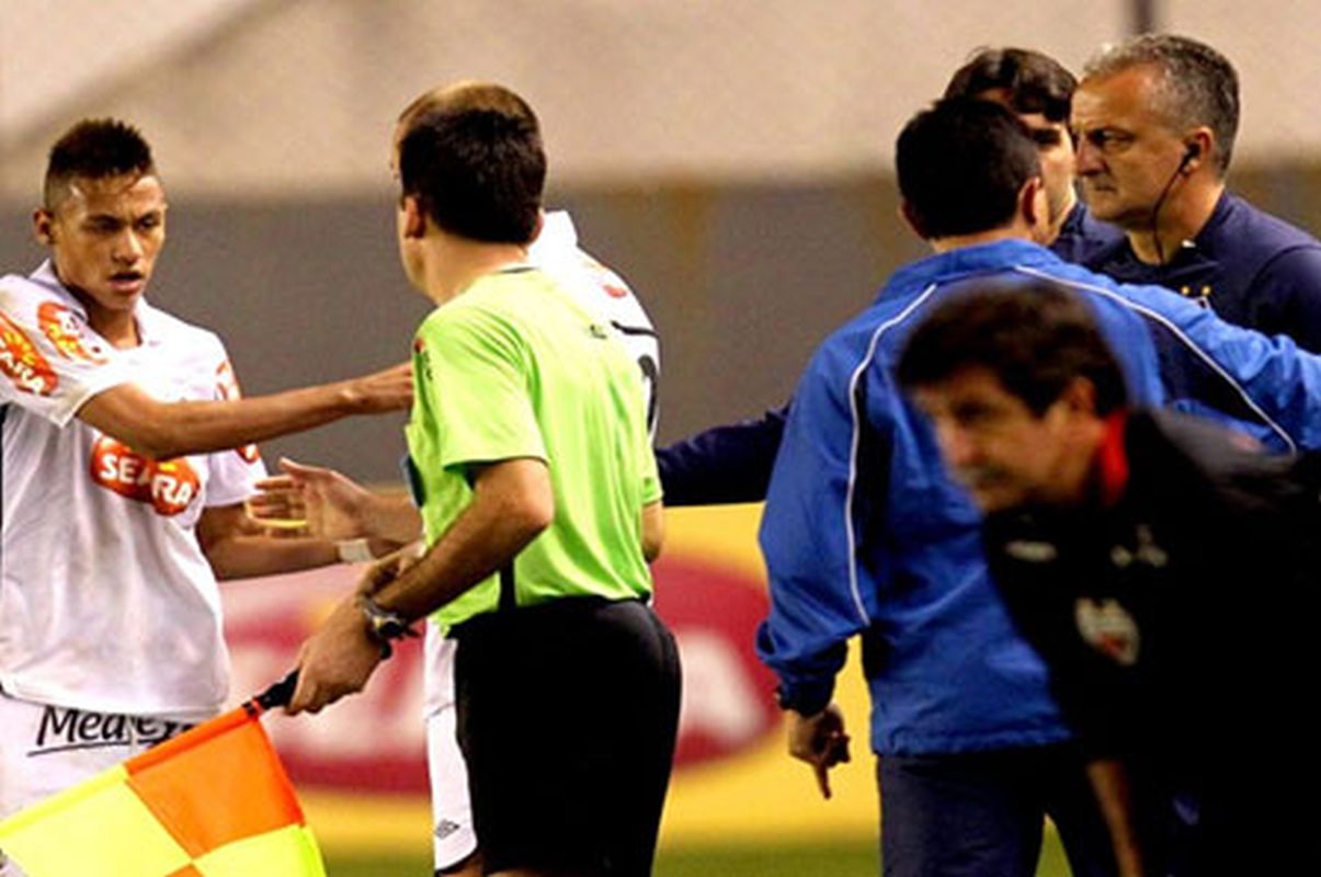 Neymar xingou o técnico Dorival Júnior e atirou uma garrafa de água no chão, inconformado por não ter cobrado o pênalti no lance do quarto gol santista, aos 39 minutos do segundo tempo. Marcel bateu e fechou o placar de 4 a 2 para o Peixe. No vestiário, os ânimos continuaram exaltados, e o atacante discutiu com o auxiliar-técnico Ivan Izzo.