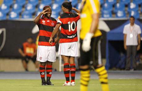 Vágner Love e Ronaldinho comemoram o gol do Flamengo. Foto: André Portugal – VIPCOMM.