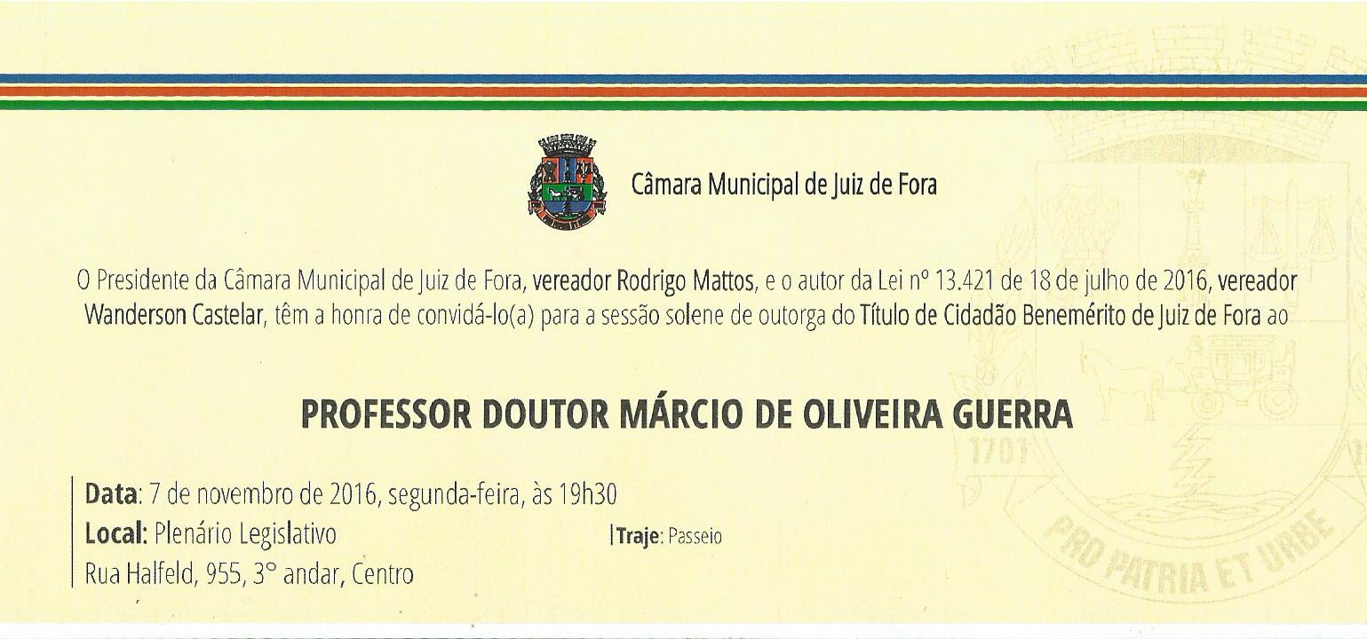 Convite da Câmara para título de Cidadão Benemérito 2016