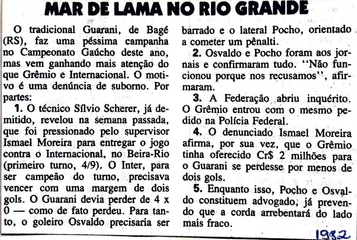 Mar de lama no Rio Grande Autor do post:ukbsistemas Post publicado:31 de dezembro de 2021 Categoria do post:Corrupção no esporte Comentários do post:0 comentário orrup Tags: corrupção, rio grande Leia mais artigos Próximo postZebrão em Juazeiro Você também pode gostar CSKA pagou mala preta 11 de dezembro de 2020 Investigação conclui que clube do Rio falsificou 57 exames de Covid; três pessoas são denunciadas 22 de maio de 2021 Mancha na tradição 27 de agosto de 2025 Deixe um comentárioComentárioDigite seu nome ou nome de usuário para comentar Digite seu endereço de e-mail para comentar Digite o URL do seu site (opcional) Δ
