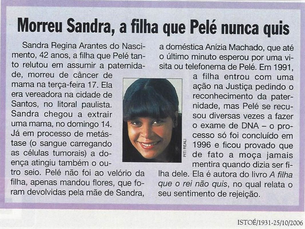 Morreu Sandra, a filha que Pelé nunca quis