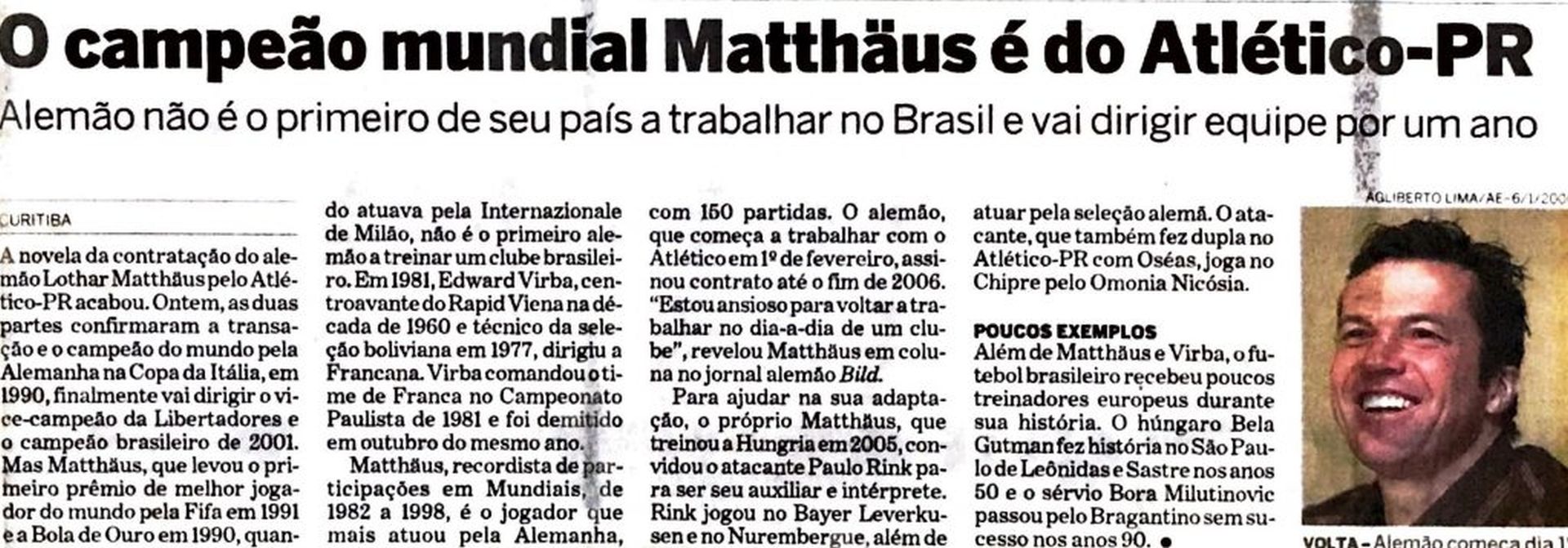 O campeão mundial Matthaus é do Atlético-PR