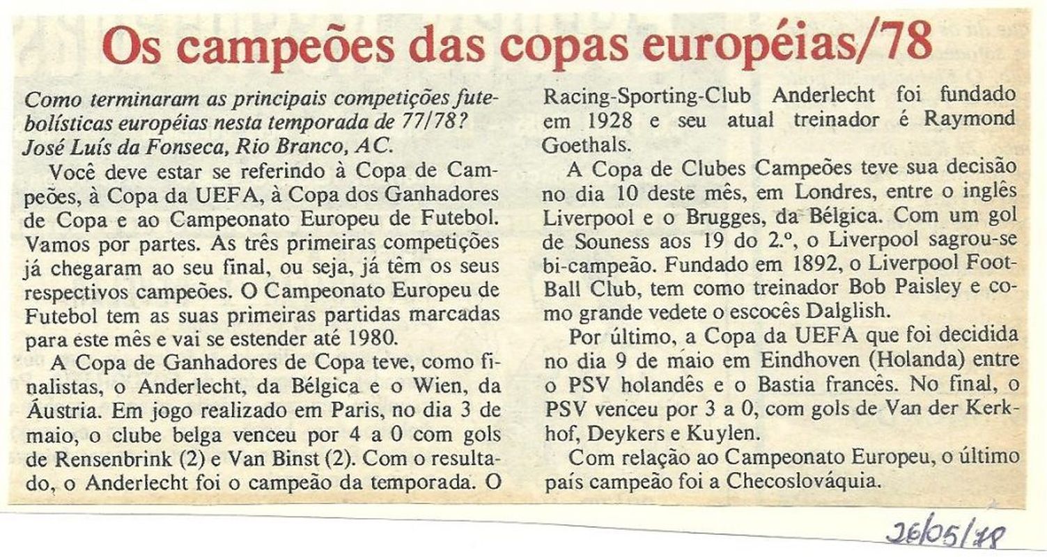 Os campões das Copas Europeia/78 Autor do post:ukbsistemas Post publicado:12 de março de 2019 Categoria do post:Curiosidades do Esporte Comentários do post:0 comentário Você também pode gostar Futebol completa um século no Estado do Rio 9 de março de 2025 O extinto Paissandu 15 de julho de 2019 Racismo: Grafite dá sinal verde ao advogado para levar o caso às autoridades. Saulo Abreu viu pela TV e ordenou a ação 2 de julho de 2015 Deixe um comentárioComentárioDigite seu nome ou nome de usuário para comentar Digite seu endereço de e-mail para comentar Digite o URL do seu site (opcional) Δ